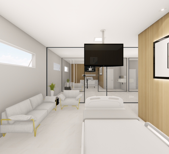 O projeto do Hospital teve como objetivo um espaço com os estilos clean e moderno, mantendo a mesma malha de pilares do pavimento térreo para que não interferisse na sua estrutura. O design valorizou um espaço arejado de ampla iluminação, para garantir melhor conforto aos pacientes. Cada ambiente foi pensado valorizando a estética da edificação a todo momento, e elaborados para atender o público de forma mais prática e funcional.